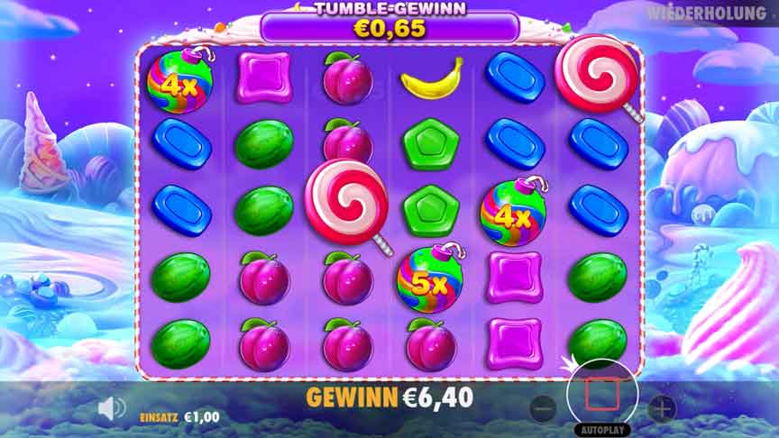 Wer setzt nicht gerne mal die rosarote Brille auf und reist in eine Welt, in der noch alles in Ordnung zu sein scheint? Wer dazu noch etwas für süße Sachen, jede Menge Früchte und bunte lustige Berglandschaften übrig hat, wird sich zweifellos in der Welt von Sweet Bonanza wohl fühlen. Dieses Candyland, erschaffen 2019 von Pragmatic Play, kombiniert selbst in wiederkehrenden Spiel Sessions immer wieder gerne spannende Funktionalität mit äußerst farbenfrohen Elementen. Die Gewinnmöglichkeiten, die noch dazu kommen, setzen hier schnell den Deckel drauf und so fühlen sich auch Unbekannte dieses Spiels recht schnell gut aufgehoben. HIER kannst du es testen.